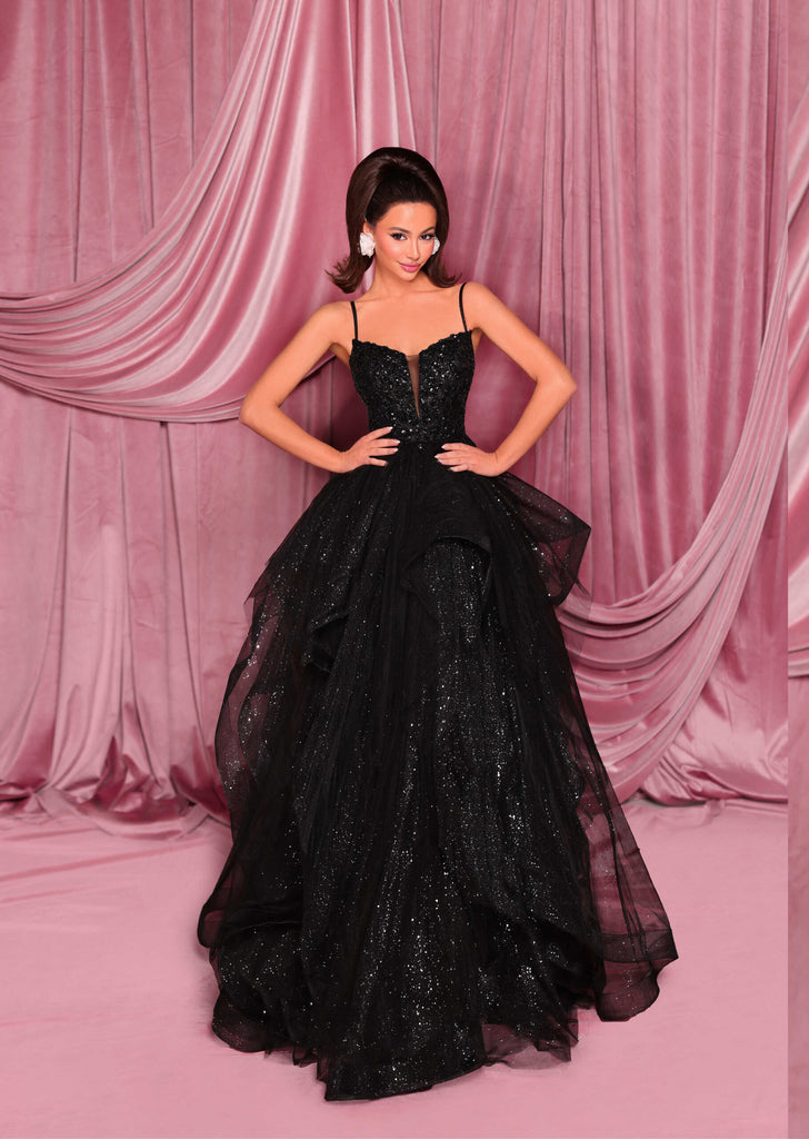 For the Adelaide formal girl ready to make her fairytale entrance, blends romance and modern elegance in perfect harmony. The structured corset bodice features intricate embellishment and a soft sweetheart neckline, complete with in-built cups for a flawless, supportive fit.The layered waterfall-style ballgown skirt cascades beautifully from the waist, crafted in glitter tulle that offers a soft glisten—a luminous shimmer that catches the light without feeling overpowering. Fine mesh glitter straps complete the look, providing subtle sparkle and added comfort.