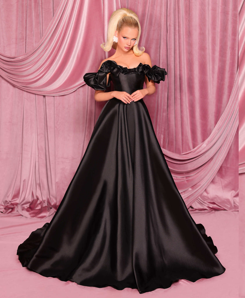 The perfect alternative to the iconic Regina gown by House of St. Patrick—capturing the same high-fashion elegance at a fraction of the price. This stunning design features a ruffled off-the-shoulder neckline that drapes gracefully over the arms, paired with a flattering A-line skirt crafted from structured Mikado fabric.Whether you're a modern bride seeking timeless sophistication or a mother of the bride or groom wanting to make a chic, graceful statement, offers elegance, class, and presence in every detail. With custom colour optionsavailable, this gown transitions beautifully across bridal and formal occasions.A flawless choice for those who want to feel luxurious, look unforgettable, and stay within budget.